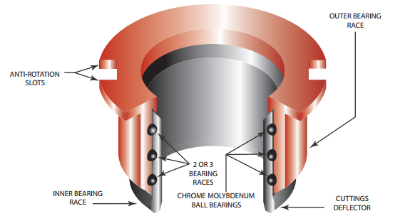 Tricon Rotary Deck Bushings deliver increased drilling production and reduced maintenance costs for blast hole drills. Precision machined by Tricon, the Rotary Deck Bushing is a ball bearing assembly with 2 or 3 bearing races situated between a stationary outer body and a rotating inner sleeve. The bearings require no lubrication.